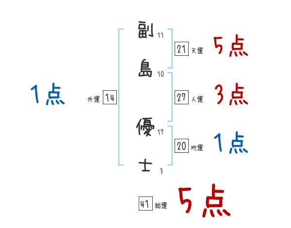 副島優士さんの画数の鑑定結果