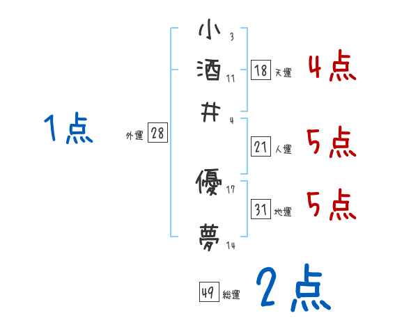 小酒井優夢さんの画数の鑑定結果