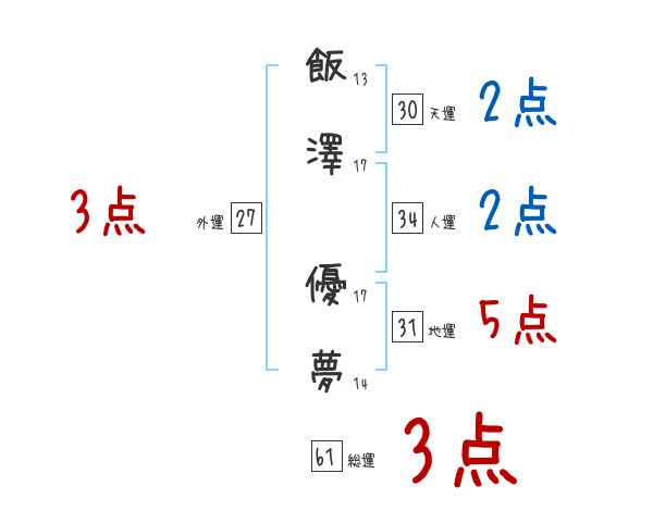 飯澤優夢さんの画数の鑑定結果