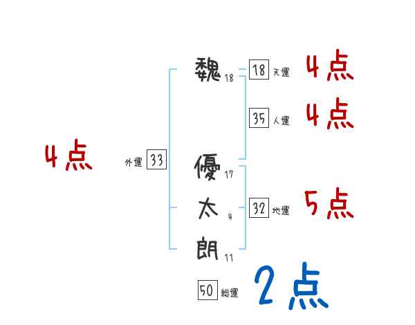 魏優太朗さんの画数の鑑定結果