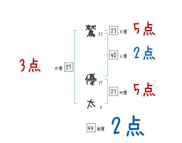 鷲優太さんの画数の鑑定結果
