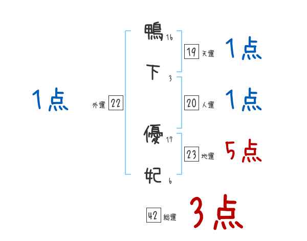 鴨下優妃さんの画数の鑑定結果