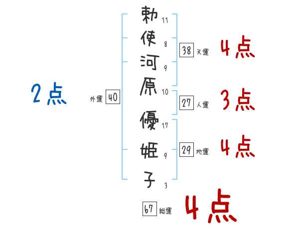 勅使河原優姫子さんの画数の鑑定結果