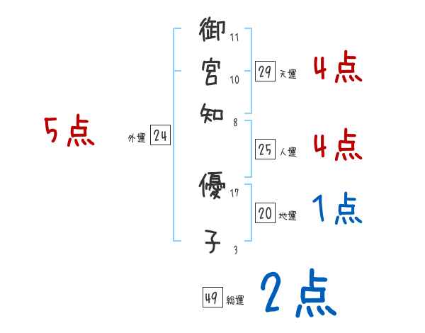 御宮知優子さんの画数の鑑定結果