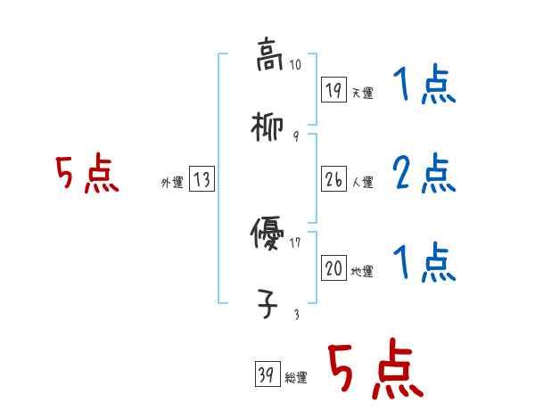高柳優子さんの画数の鑑定結果