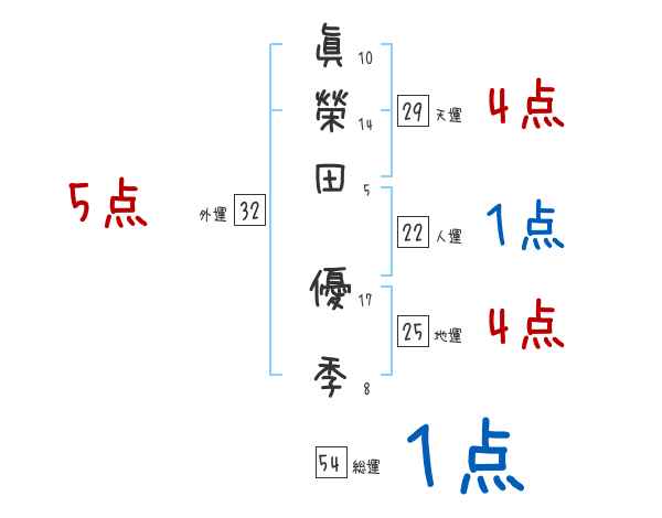 眞榮田優季さんの画数の鑑定結果