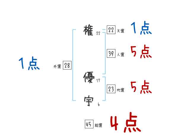 権優宇さんの画数の鑑定結果