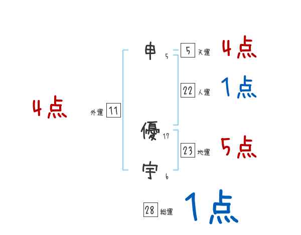 申優宇さんの画数の鑑定結果