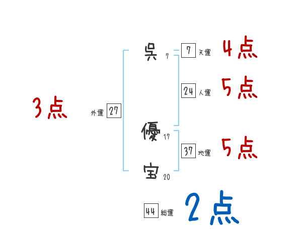 呉優宝さんの画数の鑑定結果