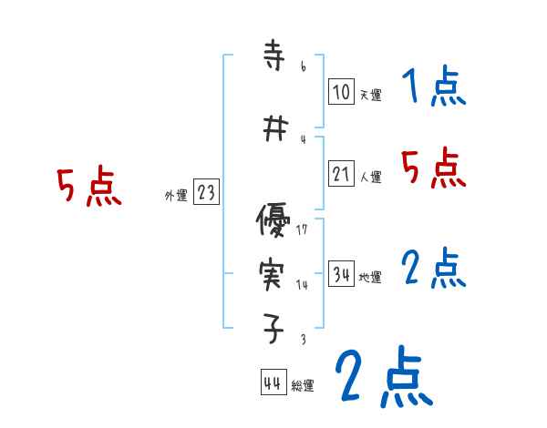 寺井優実子さんの画数の鑑定結果