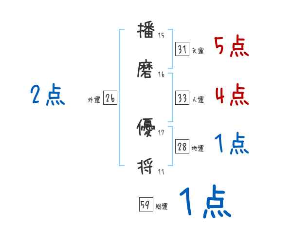 播磨優将さんの画数の鑑定結果