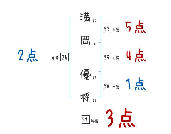 満岡優将さんの画数の鑑定結果