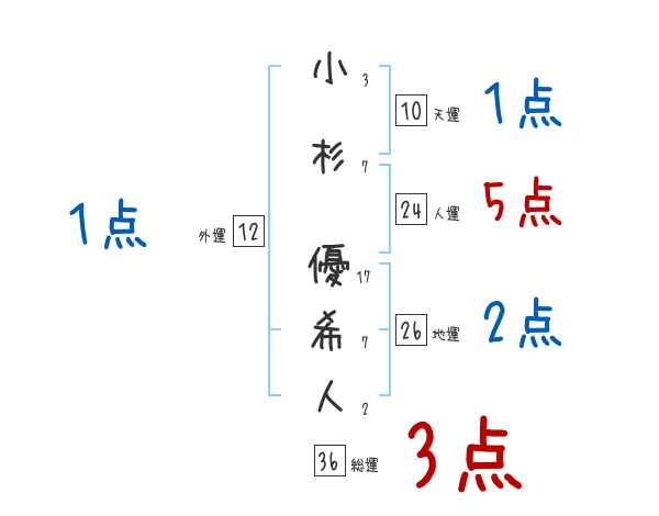 小杉優希人さんの画数の鑑定結果