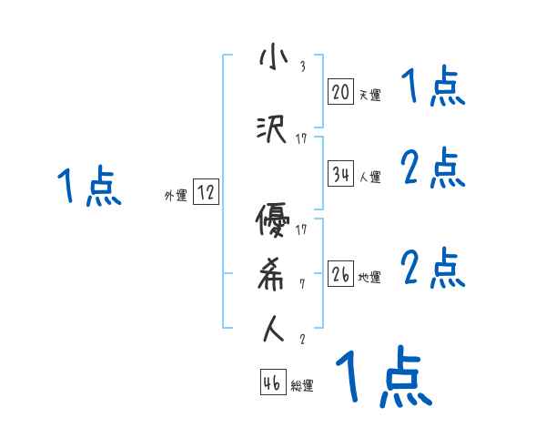小沢優希人さんの画数の鑑定結果