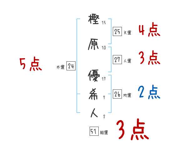 樫原優希人さんの画数の鑑定結果