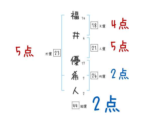 福井優希人さんの画数の鑑定結果