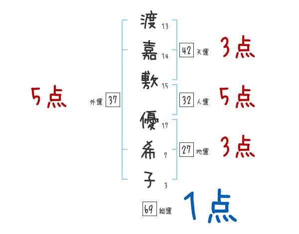 渡嘉敷優希子さんの画数の鑑定結果