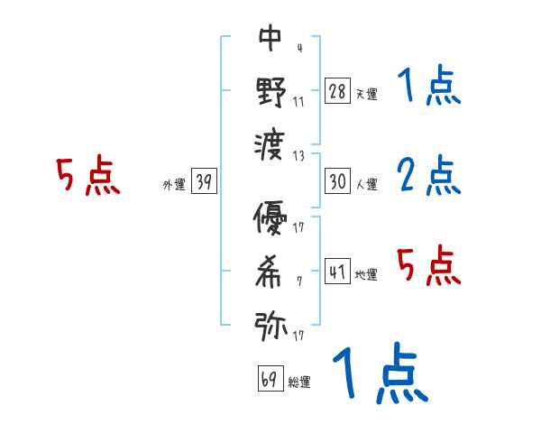 中野渡優希弥さんの画数の鑑定結果