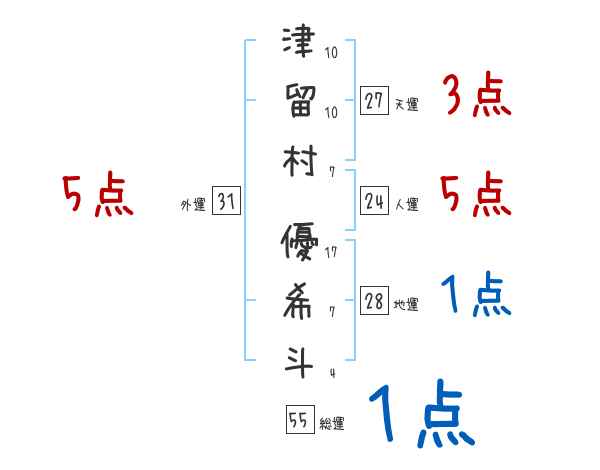 津留村優希斗さんの画数の鑑定結果