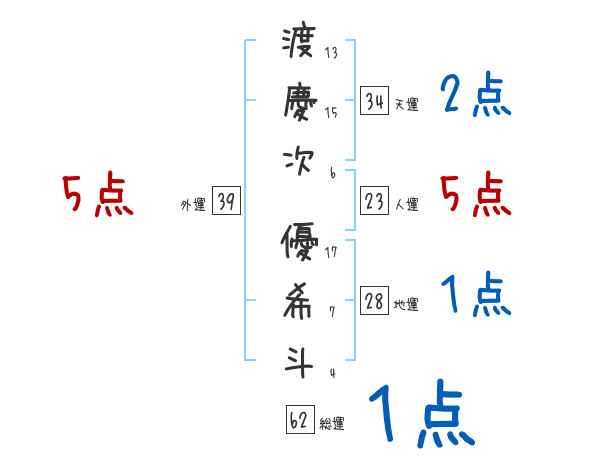 渡慶次優希斗さんの画数の鑑定結果