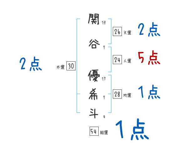 関谷優希斗さんの画数の鑑定結果