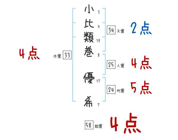小比類巻優希さんの画数の鑑定結果