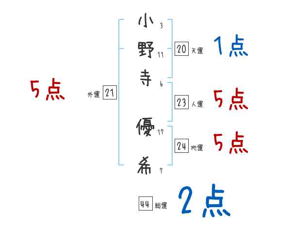 小野寺優希さんの画数の鑑定結果
