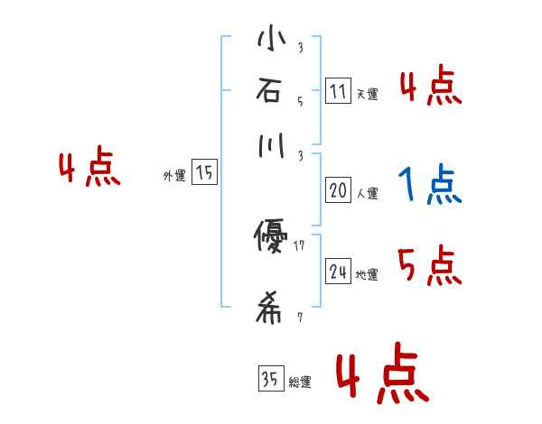 小石川優希さんの画数の鑑定結果