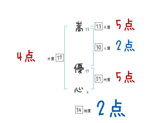 嵩優心さんの画数の鑑定結果