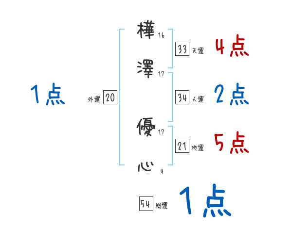 樺澤優心さんの画数の鑑定結果