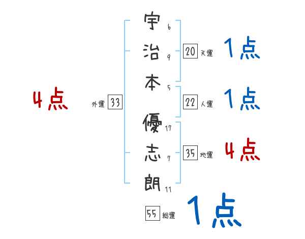 宇治本優志朗さんの画数の鑑定結果
