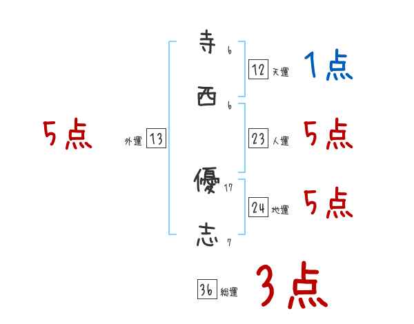 寺西優志さんの画数の鑑定結果