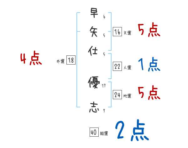 早矢仕優志さんの画数の鑑定結果