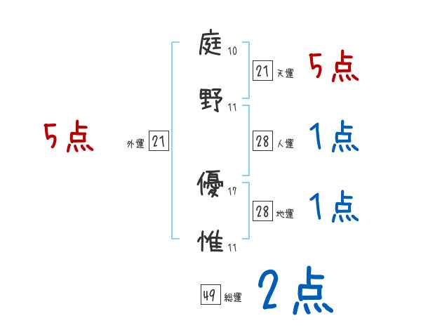 庭野優惟さんの画数の鑑定結果