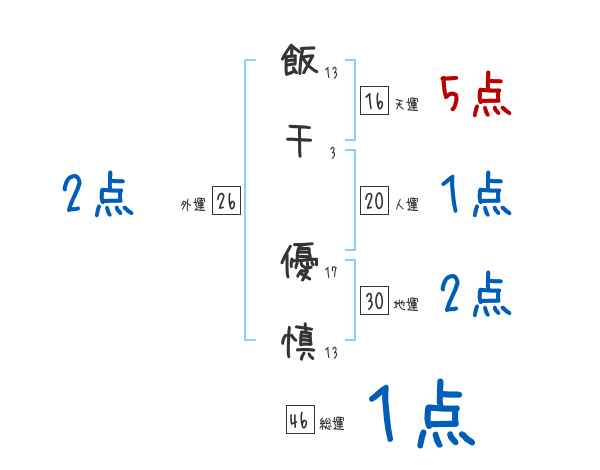飯干優慎さんの画数の鑑定結果