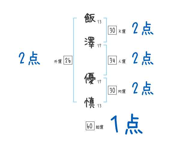 飯澤優慎さんの画数の鑑定結果
