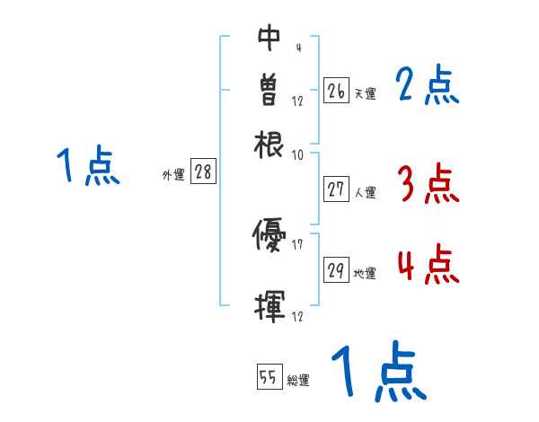 中曽根優揮さんの画数の鑑定結果