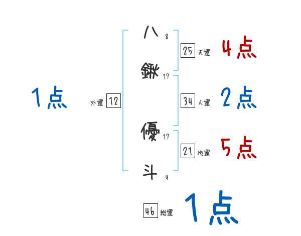 八鍬優斗さんの画数の鑑定結果