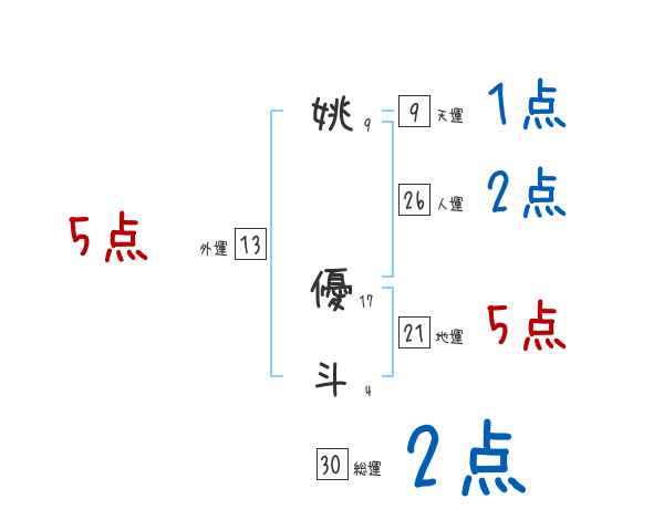 姚優斗さんの画数の鑑定結果