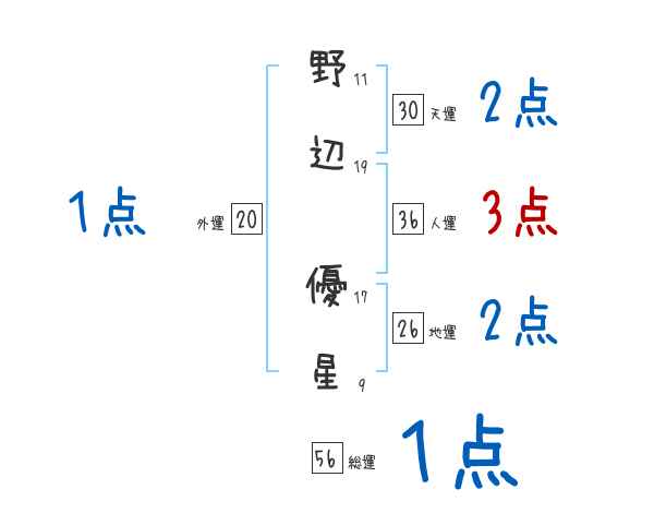 野辺優星さんの画数の鑑定結果