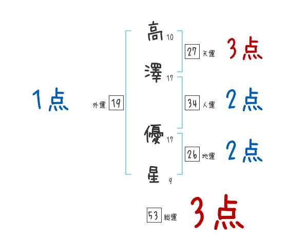 高澤優星さんの画数の鑑定結果