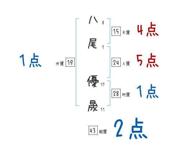 八尾優晟さんの画数の鑑定結果
