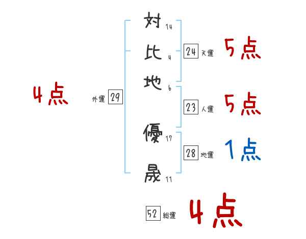 対比地優晟さんの画数の鑑定結果