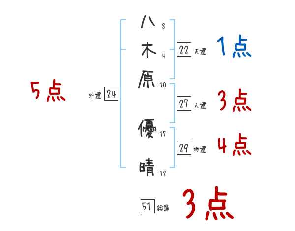 八木原優晴さんの画数の鑑定結果