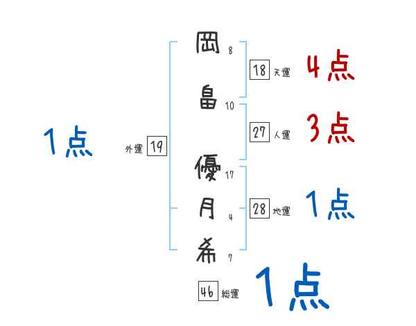 岡畠優月希さんの画数の鑑定結果
