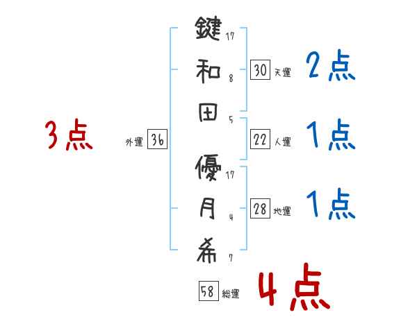 鍵和田優月希さんの画数の鑑定結果