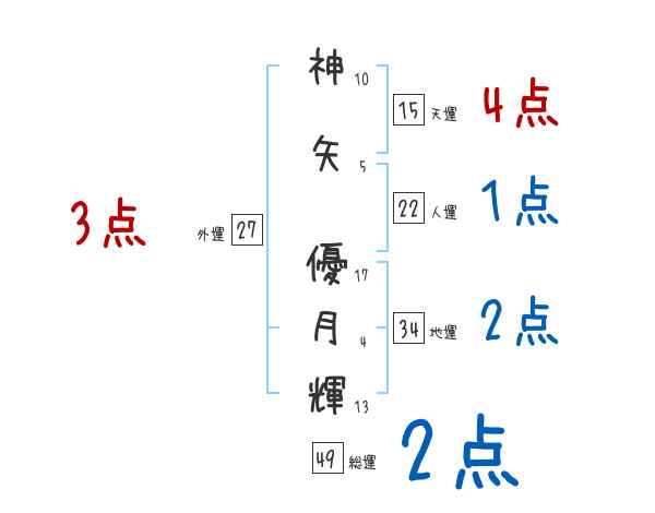神矢優月輝さんの画数の鑑定結果
