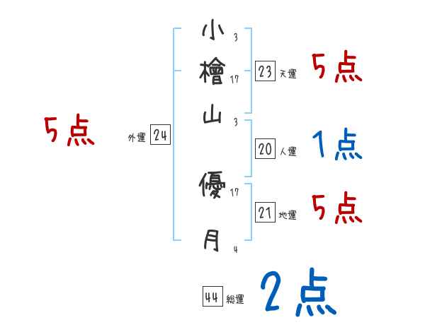 小檜山優月さんの画数の鑑定結果