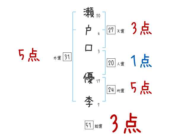 瀬戸口優李さんの画数の鑑定結果