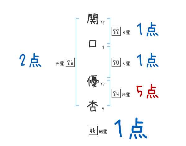 関口優杏さんの画数の鑑定結果